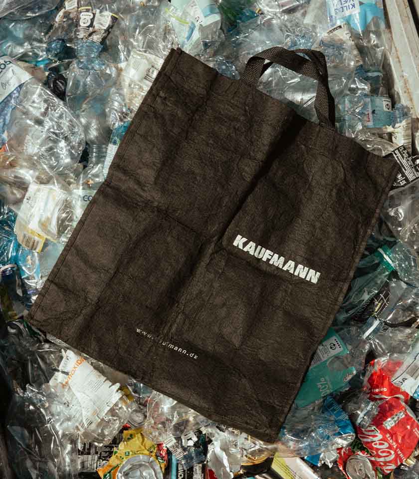 Vores bærepose er lavet af polypropylen (PP), som er 100 % genanvendeligt. Når du er færdig med posen, kan du lægge den i plastaffaldscontaineren. Materialet kan omsmeltes med minimalt spild og bruges til nye produkter.