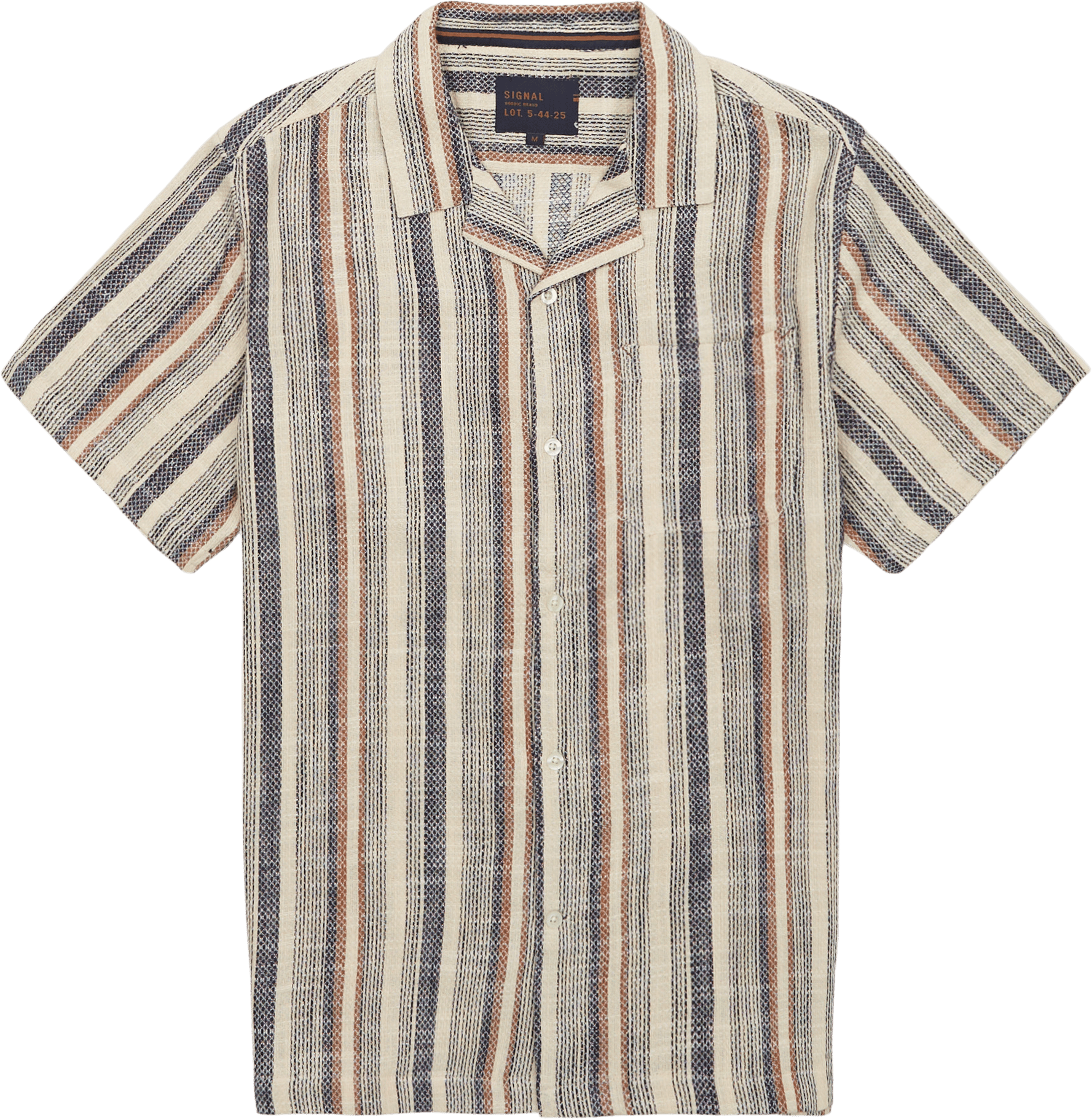 Opgrader din garderobe med denne elegante skjorte fra Signal. Den skiller sig ud med sine flotte farver og stribe design. Kombiner dem med et par sandfarvede shorts for et flot look.