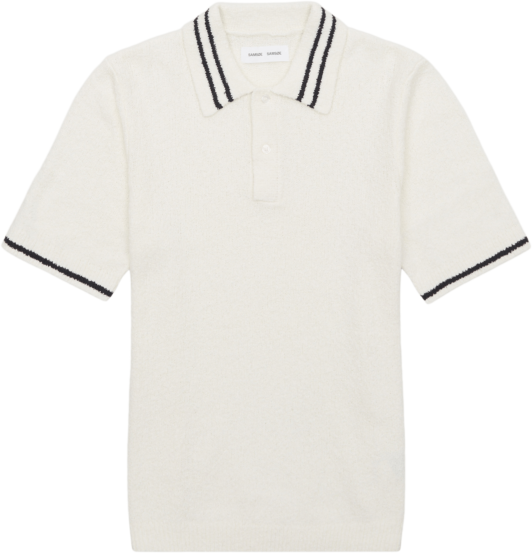 Opdater gaderoben med denne flotte strikkede polo t-shirt fra Samsøe Samsøe. Den er produceret i et lækker blødt materiale og har et cool design. Perfekt til en varm sommerdag.