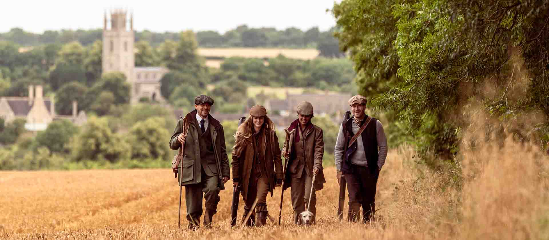 Her er der ikke tale om mere eller mindre fantasifuldt camouflagetøj. Nej tak. Skal illusionen om en engelsk herregårdsjagt bevares intakt, handler det snarere om uldtrøjer, veste og jakker i tweed. Eller en jakke i lækkert moleskin, der er vævet så tæt, at den er vindtæt og praktisk talt også vandtæt. Designet er så klassisk, som det næsten kan blive. Og priserne derefter.